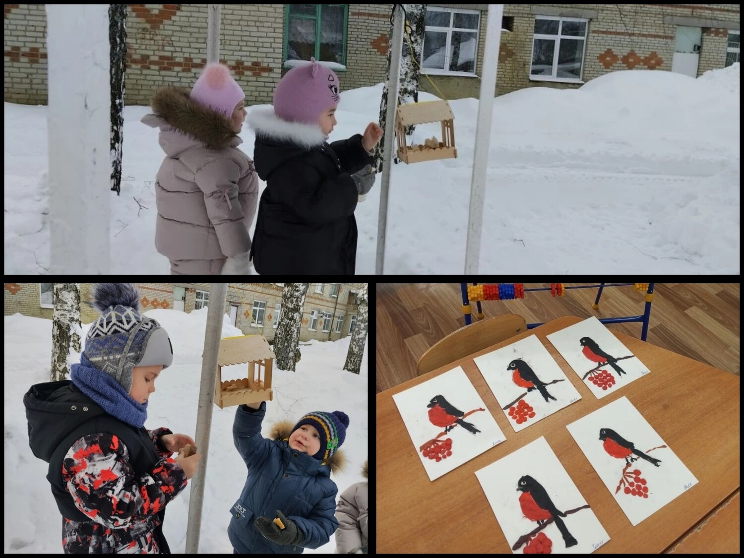 15 января отмечается " День зимующих птиц в России". И мы с детьми не остались в стороне. Мы посвятили этот день зимующим птицам: рассматривали иллюстрации , беседовали, составляли рассказы о них, придумывали загадки о птицах, кормили и в заключении дня выполнили творческие работы" Снегирь" в технике " пластилинография". День прошёл плодотворно! Прикрепления: